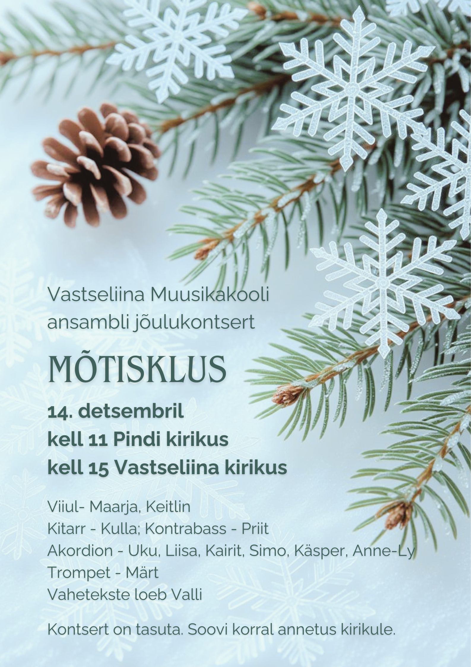 Ootame Teid 14. detsembril kell 11 Pindi kirikus ja kell 15 Vastseliina kirikus.